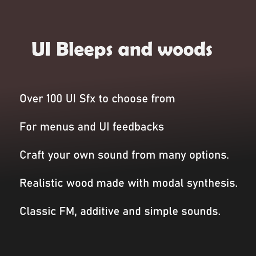 A sound pack where you choose your own UI sounds from many variations, allowing you to craft your UI's sound uniquely from common types of sounds found in game or application menus.